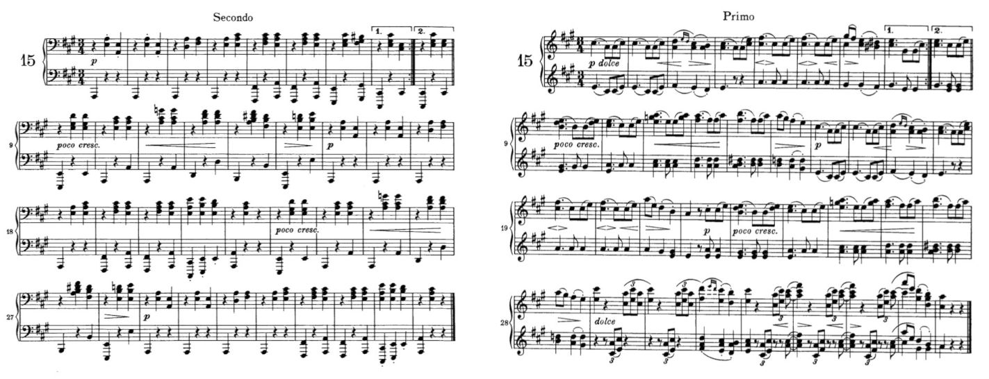 其實最開始,布拉姆斯寫的是四手聯彈的版本,後來他不僅親自把它改編成了鋼琴獨奏,還貼心的準備了困難版跟簡單版兩種選擇。