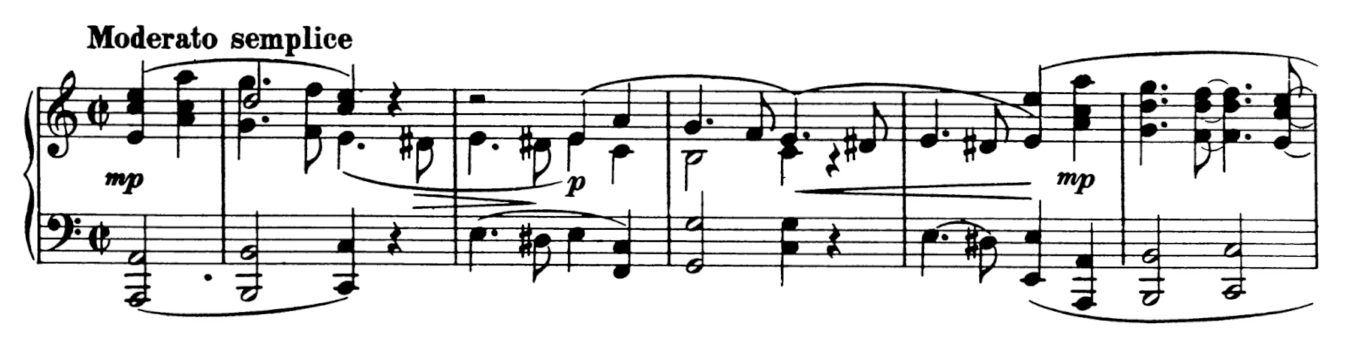 在這段音樂中,你應該有聽到很不穩定的音程,時而緊繃、時而解決,很像一個人在跟自我對話。儘管中間有點矛盾的想法糾結,但是最後還是找到了一個解決方案,回歸平靜。